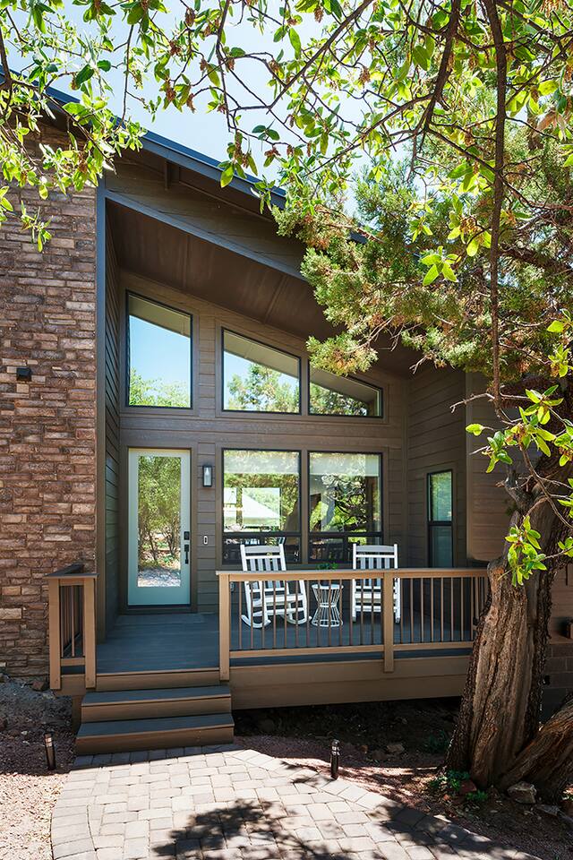 Trendy Pines Lodge is located in a gated community, situated in Pine, Arizona. This neighborhood offers you the perfect blend of privacy, tranquility, and convenience, ensuring an unforgettable stay for you and your loved ones. Perched on the slopes of the spectacular Mogollon Rim, our cabin invites you to immerse yourself in the breathtaking natural beauty of the region. As you stroll through the neighborhood, you'll be captivated by the sight of majestic mountains, lush foliage, and clear blue skies. The sweeping views of the Rim and the verdant Pine Valley below create a stunning panorama that will leave you in awe. The gentle sound of the breeze rustling through the trees adds to the relaxing and peaceful atmosphere that is sure to rejuvenate your spirit. The gated entrance ensures that only residents and authorized guests have access to the community, providing you with peace of mind throughout your stay. The friendly neighbors and watchful community make it an ideal location for families and individuals seeking a worry-free getaway. Trendy Pines Lodge is located in Pine, Arizona where you can explore local attractions, shops, and eateries. Discover the rich history and culture of the region at the Pine-Strawberry Museum, or enjoy the awe-inspiring vistas at Tonto Natural Bridge State Park. For outdoor enthusiasts, there is no shortage of recreational activities, including hiking and mountain biking along the Mogollon Rim trails and fishing the Rim country lakes and streams. Experience the best of Pine, Arizona by staying at the Trendy Pines Lodge. With its awe-inspiring views of the Mogollon Rim and the picturesque Pine valley, and convenient access to local attractions, you'll find everything you need for an unforgettable stay. Book your cabin today and let the captivating beauty of Pine create memories that will last a lifetime.